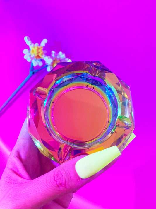 ๐ Holographic Rainbow Glass Ashtray ๐