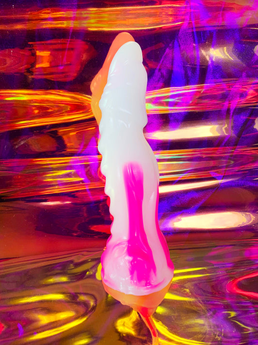 ๐ White & Pink Fluffy Fantasy Dildo ๐